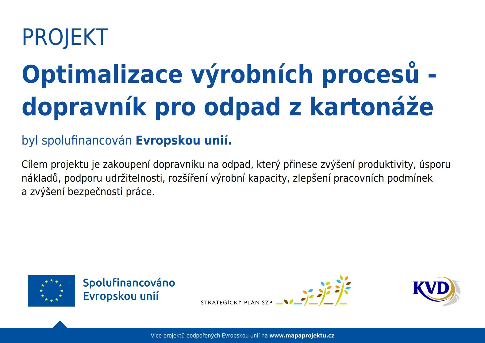 KVD spol. s r.o. je přední český výrobce obalů z vlnité lepenky, zaměřený na efektivní sériovou výrobu s minimem odpadu. Nabízí kvalitní obalová řešení s důrazem na optimalizaci nákladů a pevnost balení.